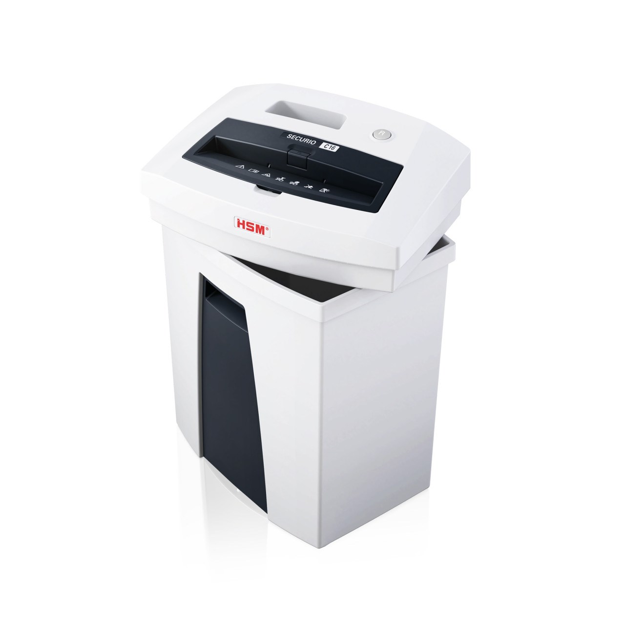 Skartovací stroj nové řady HSM SECURIO ke stolu. Má vysoký výkon, moderní vzhled, nízkou hladinu hluku a snadné ovládání. Motor je před přehřátím chráněn tepelnou pojistkou, která omezuje dobu chodu. Konstukce je dvoudílná se snímatelnou hlavou ze zásobníku. Manipulaci usnadňuje praktické madlo. Vyspělá elektronika umožňuje úsporu elektrické energie. Stroj skartuje papír i s kancelářskými sponkami a plastové karty. Proužkový řez 5,8 mm zvyšuje kapacitu řezu. Záruka na stroj je 60 měsíců, doživotní záruka na nože.