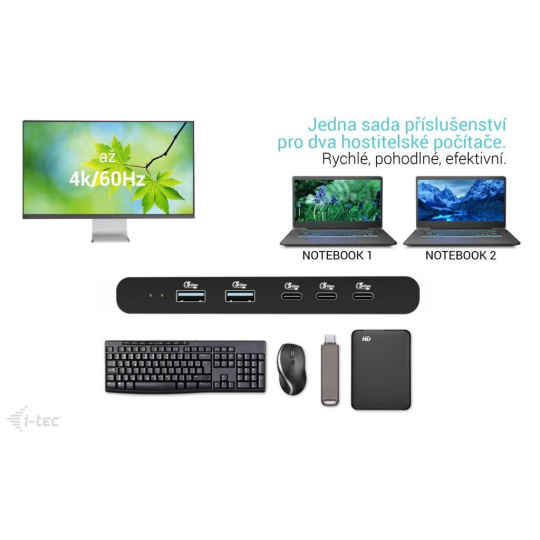 i-tec KVM Docking Station HDMI pre 2 hostiteľov, Power Delivery 2x 100W