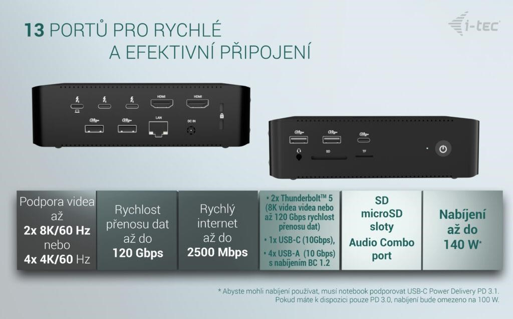 Extrémne vysoký výkon, ultrarýchly prenos dát a podpora rozlíšenia až 8K/60 Hz. Najvýkonnejšia dokovacia stanica i-tec na trhu!