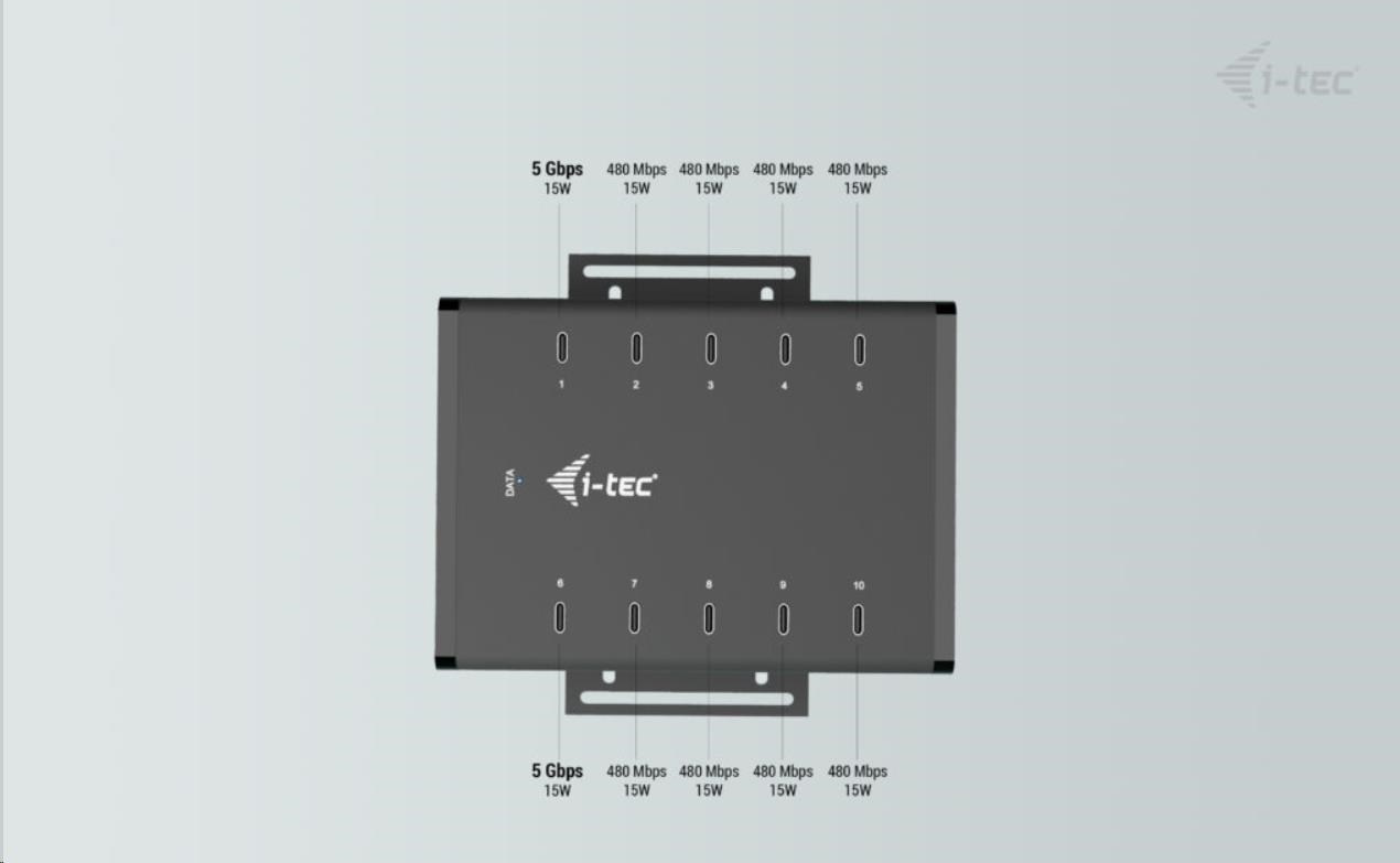 i-tec USB-C/USB-A Metal Charging + data HUB, 15W per port, 10x USB-C