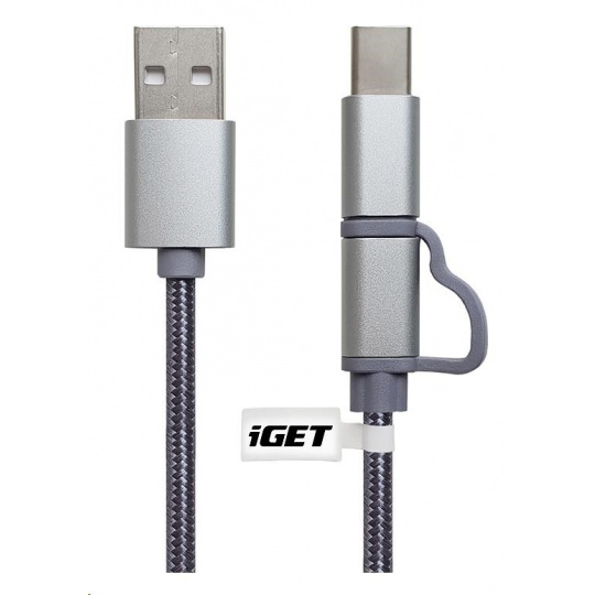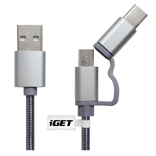 iGET G2V1 USB kábel 2v1, 1 m, strieborný, microUSB a USB-C, predĺžené konce