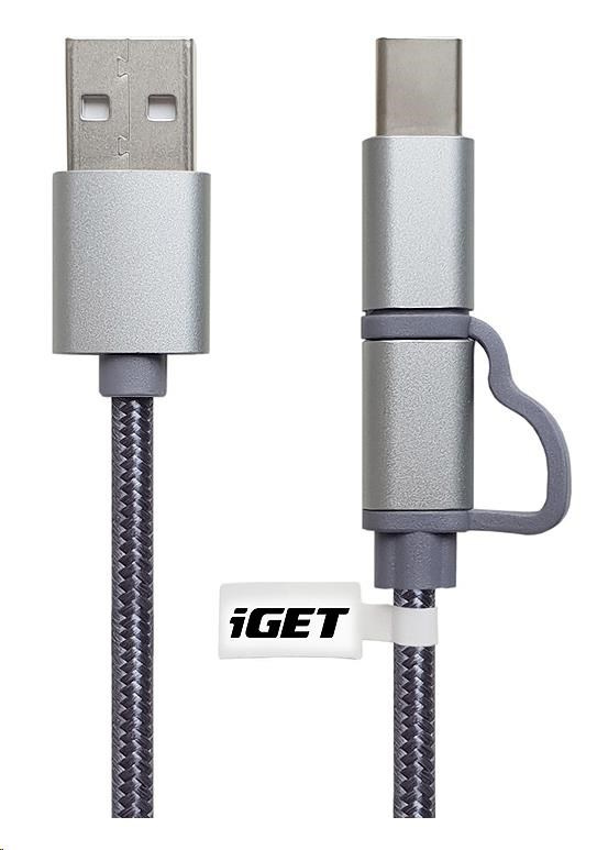 iGET G2V1 USB kábel 2v1, 1 m, strieborný, microUSB a USB-C, predĺžené konce