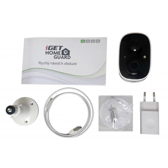 - Obsah balenia: kamera iGET HOMEGUARD HGWBC351, rýchly návod na obsluhu EN, CZ, SK, HU, napájací adaptér 5V DC 1.5A, kábel USB/microUSB 1m, nastaviteľný skrutkovací držiak na upevnenie kamery na stenu/strop, hmoždinky a skrutky na montáž, šablóna s vyznačením montážnych otvorov, nálepka s výstrahou o zabezpečenom objekte