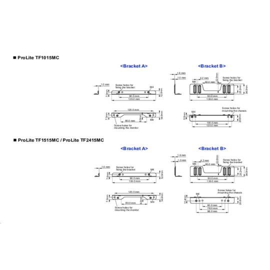 Sada montážneho držiaka pre dotykové obrazovky iiyama TFxx15MC s otvoreným rámom. Toto riešenie je kompatibilné s nasledujúcimi modelmi iiyama: TF1015MC, TF1515MC, TF2415MC.