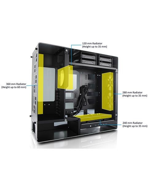 Počítačová skriňa 909 je vyrobená z odolných materiálov, jej skosené hrany a hlavná konštrukcia sú z eloxovaného hliníka, čo vytvára majstrovské dielo remeselného spracovania. Zadný dizajnový panel ukrýva všetku kabeláž a bočné panely z tvrdeného skla dotvárajú moderný a dynamický vzhľad.