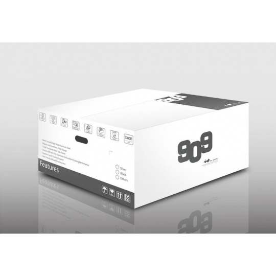 Počítačová skriňa 909 je vyrobená z odolných materiálov, jej skosené hrany a hlavná konštrukcia sú z eloxovaného hliníka, čo vytvára majstrovské dielo remeselného spracovania. Zadný dizajnový panel ukrýva všetku kabeláž a bočné panely z tvrdeného skla dotvárajú moderný a dynamický vzhľad.