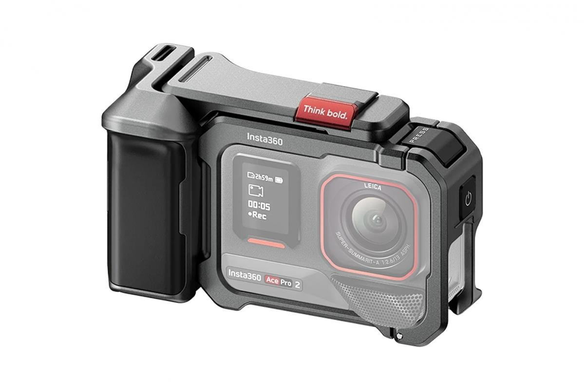 Xplorer Grip Kit od Tilta je ergonomický grip pre Insta360 Ace Pro 2 a Ace Pro. Zabezpečuje pohodlnejšie držanie a stabilnejšie zábery. Obsahuje kovový rám s montážnymi bodmi (1/4", cold shoe, rýchloupínací) pre pripojenie príslušenstva. Súčasťou balenia je grip, rám, spúšť, dekoratívny kryt a pútko.