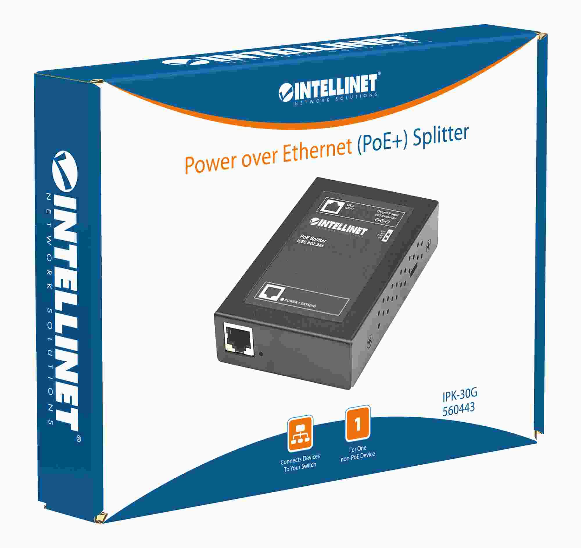 Intellinet 1-portový rozdeľovač PoE+ Power over Ethernet, 802.3at/af