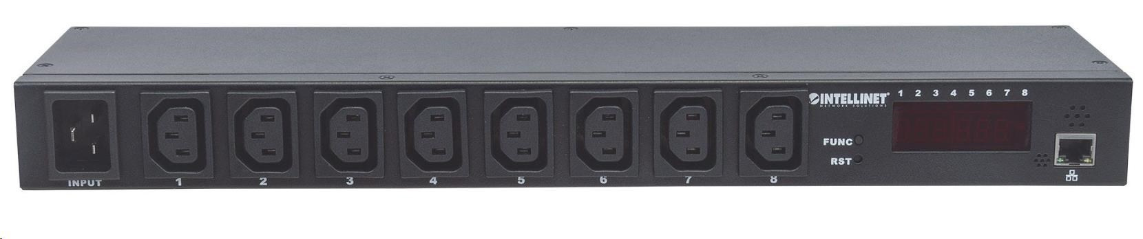 Intellinet distribučný panel PDU, 8x zásuvka C13, rack 1U, odpojiteľný kábel 16A, monitorovanie