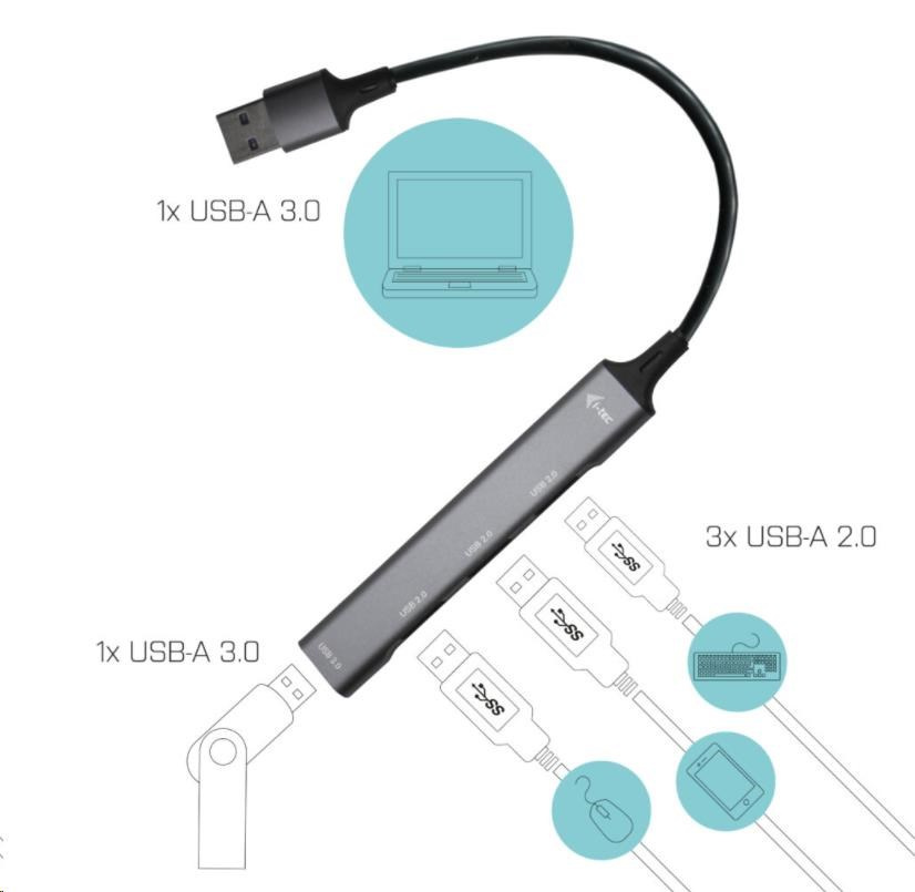 i-tec USB 3.0 Kovový HUB 1x USB 3.0 + 3x USB 2.0