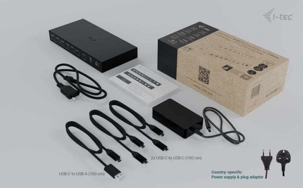 i-tec USB-C KVM Docking station for 3 Hosts, Dual Display, Power Delivery 1x 92W/2x 65W
