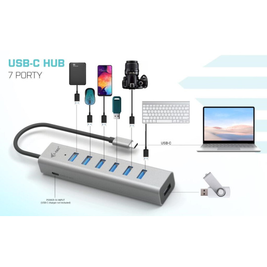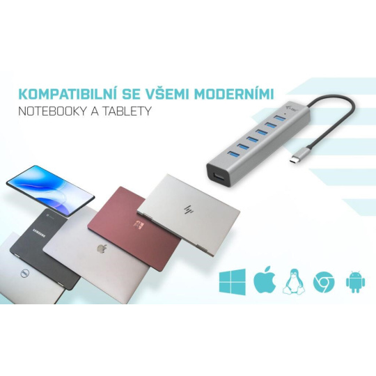 i-tec USB-C Nabíjací Kovový HUB 7 Portov