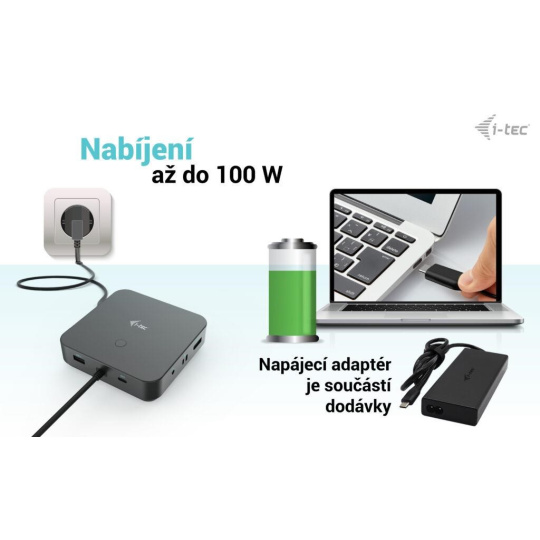 i-tec USB-C HDMI Dual DP Docking Station s Power Delivery 100 W + i-tec Univerzálny Nabíjačka 100 W