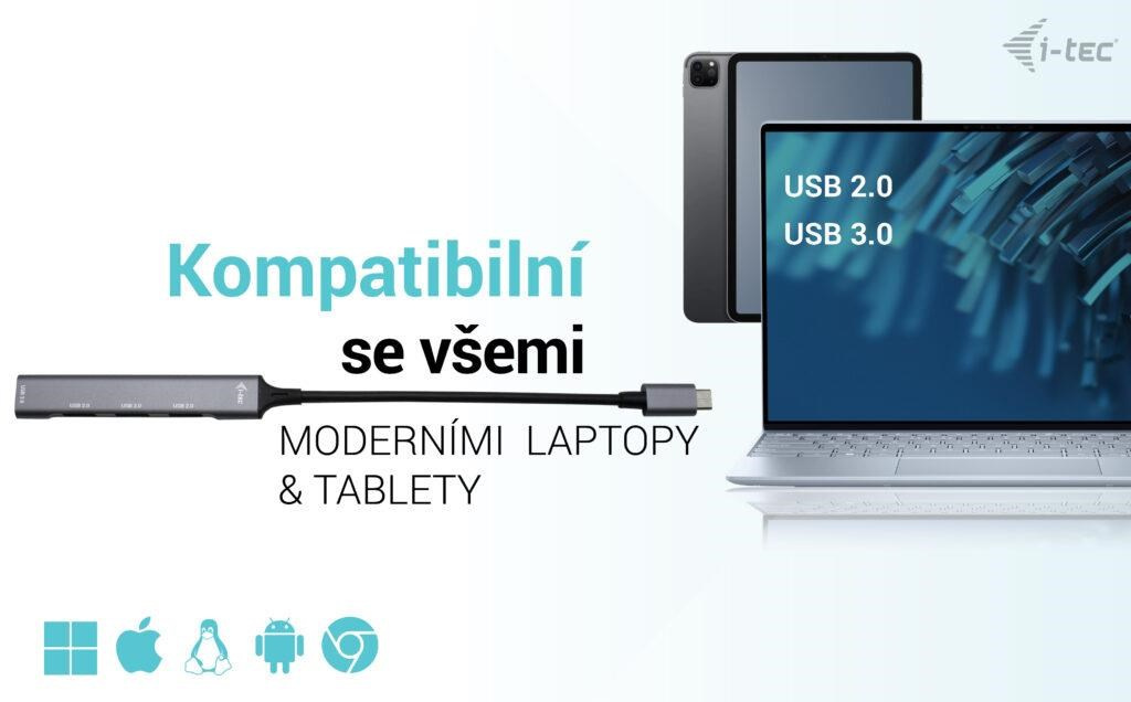- HUB podporuje všetky bežné súčasné operačné systémy (Windows, macOS, Linux, Android, Chrome OS, iPadOS)