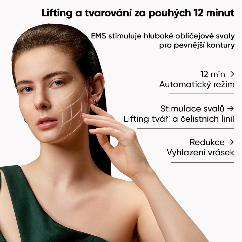 - Pokročilá technológia EMS – medicínska stimulácia svalov, ktorá bola doteraz dostupná len v klinikách, je teraz súčasťou domácej starostlivosti o pleť.