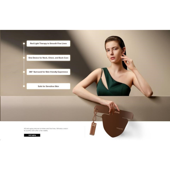Péče o pleť nekončí u tváre. Objavte profesionálne ošetrenie pre často opomínané partie a doprajte si luxus, ktorý vaša pokožka na krku, v dekolte a na chrbte pocíti aj uvidí. Predstavujeme vám svetelnú masku JOVS, inovatívne riešenie od prémiovej značky, ktorá prináša technológie z estetických kliník priamo k vám domov. Zbohom nedokonalostiam a odhaľte mladistvejšiu a žiarivejšiu pokožku bez nutnosti drahých a časovo náročných procedúr v salónoch.