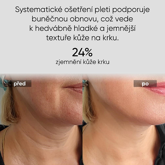 - Viditeľné omladenie a spevnenie: Podporuje syntézu kolagénu, vyhladzuje jemné vrásky a navracia pokožke pevnosť a elasticitu.