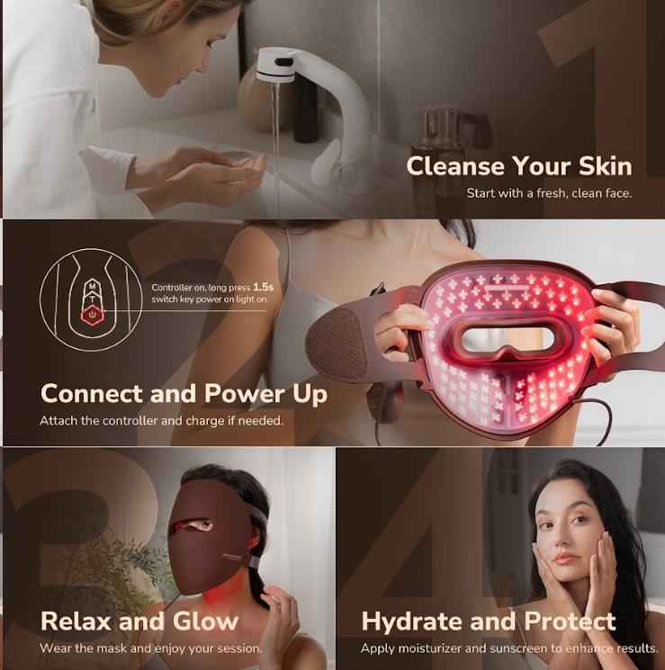 - Profesionálna 4-spektrálna LED terapia: Vybavená celkovo 328 (82 x 4) vysoko intenzívnymi LED diódami pre maximálne pokrytie a účinnosť.