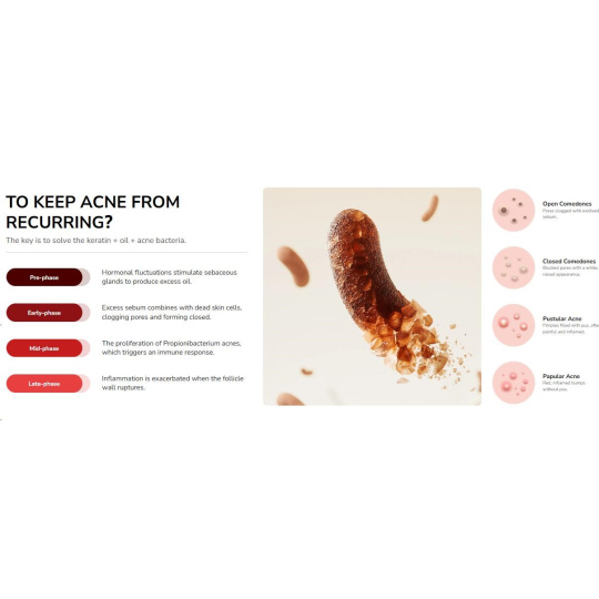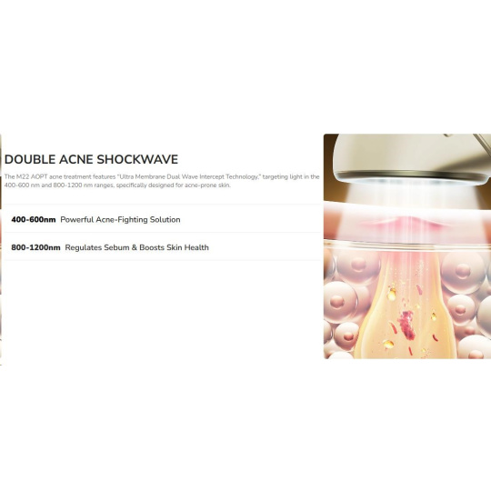 Tento inovatívny prístroj využíva unikátnu "svetelno-biologickú" technológiu na maximálny efekt. Dvojitá rádiová vlna intenzívneho pulzného svetla preniká hlboko do pokožky, kde ničí baktérie Propionibacterium acnes a reguluje produkciu mazu.