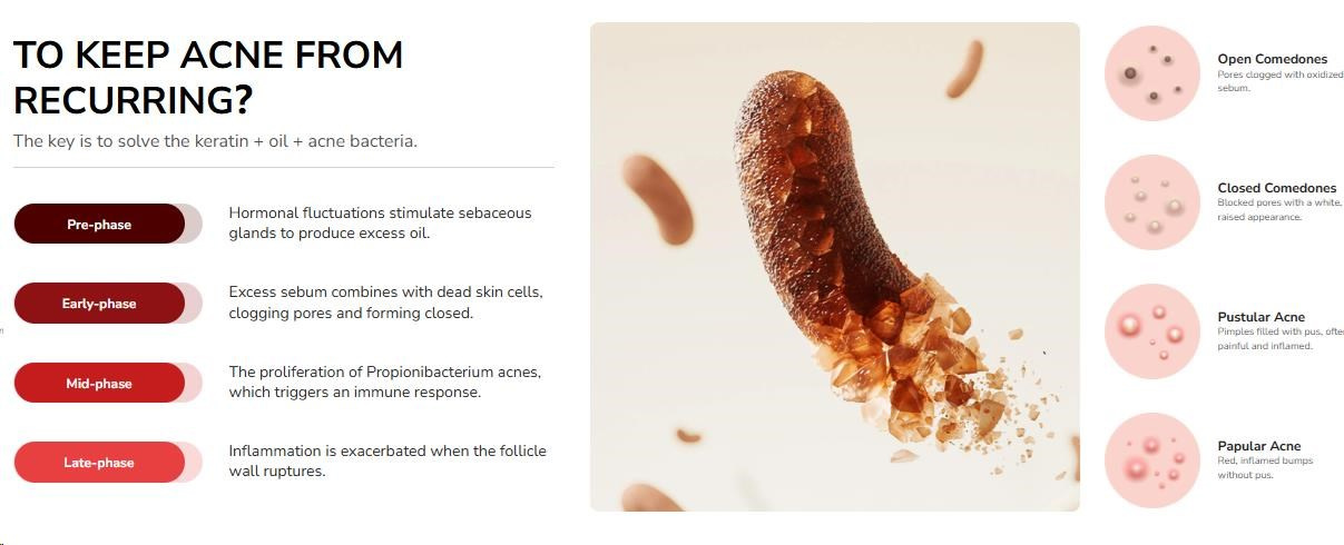 Tento inovatívny prístroj využíva unikátnu "svetelno-biologickú" technológiu na maximálny efekt. Dvojitá rádiová vlna intenzívneho pulzného svetla preniká hlboko do pokožky, kde ničí baktérie Propionibacterium acnes a reguluje produkciu mazu.