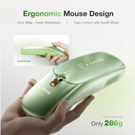 JOVS Scroll sa odlišuje nielen svojím výkonom, ale aj jedinečným dizajnom. Jeho tvar inšpirovaný starovekým svitkom je nielen krásny, ale aj dokonale ergonomický. S hmotnosťou len 286 gramov je jedným z najľahších a najkompaktnejších prístrojov na trhu, čo zaručuje jednoduchú manipuláciu, skladovanie a ideálnu prenosnosť na cestách.
