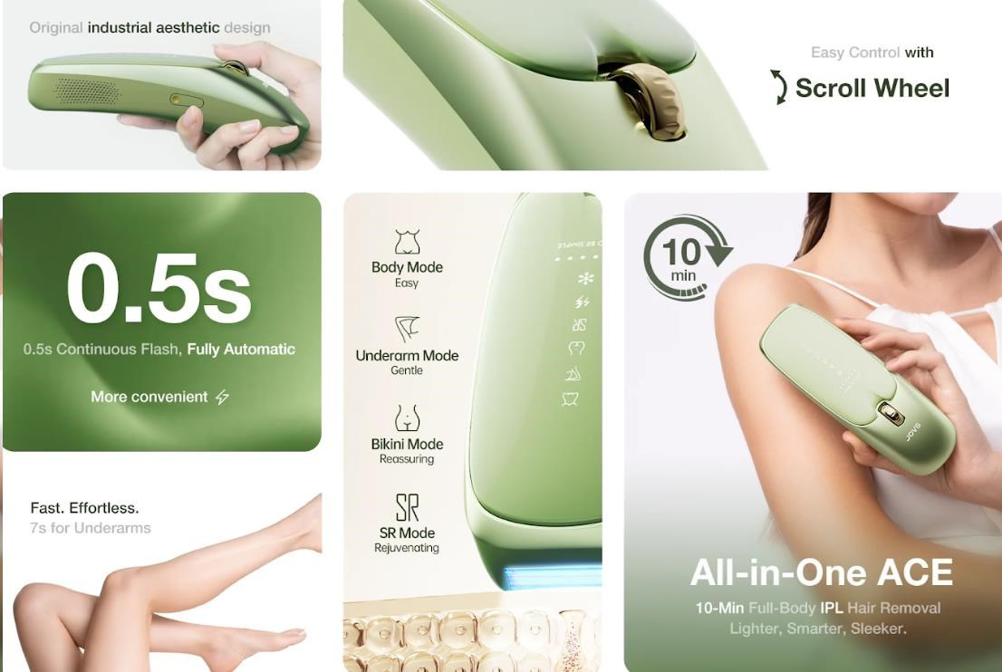 JOVS Scroll mení pravidlá hry vďaka svojej impozantnej energii 21 Joulov a extrémne rýchlym zábleskom v intervale len 0,2 sekundy. Táto kombinácia sily a rýchlosti znamená, že ošetrenie celého tela je otázkou niekoľkých minút, nie hodín. Prístroj navyše ponúka viac než len odstránenie chlpov; jeho druhý režim je zameraný na vyhladenie a omladenie pokožky, čím získate komplexnú starostlivosť v jednom kroku.