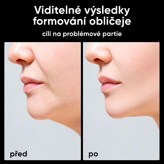 - Okamžite viditeľný V-lift: Spevňuje povolené svaly, ktoré sú hlavnou príčinou starnutia pleti, a viditeľne vytvaruje kontúry čeľuste.