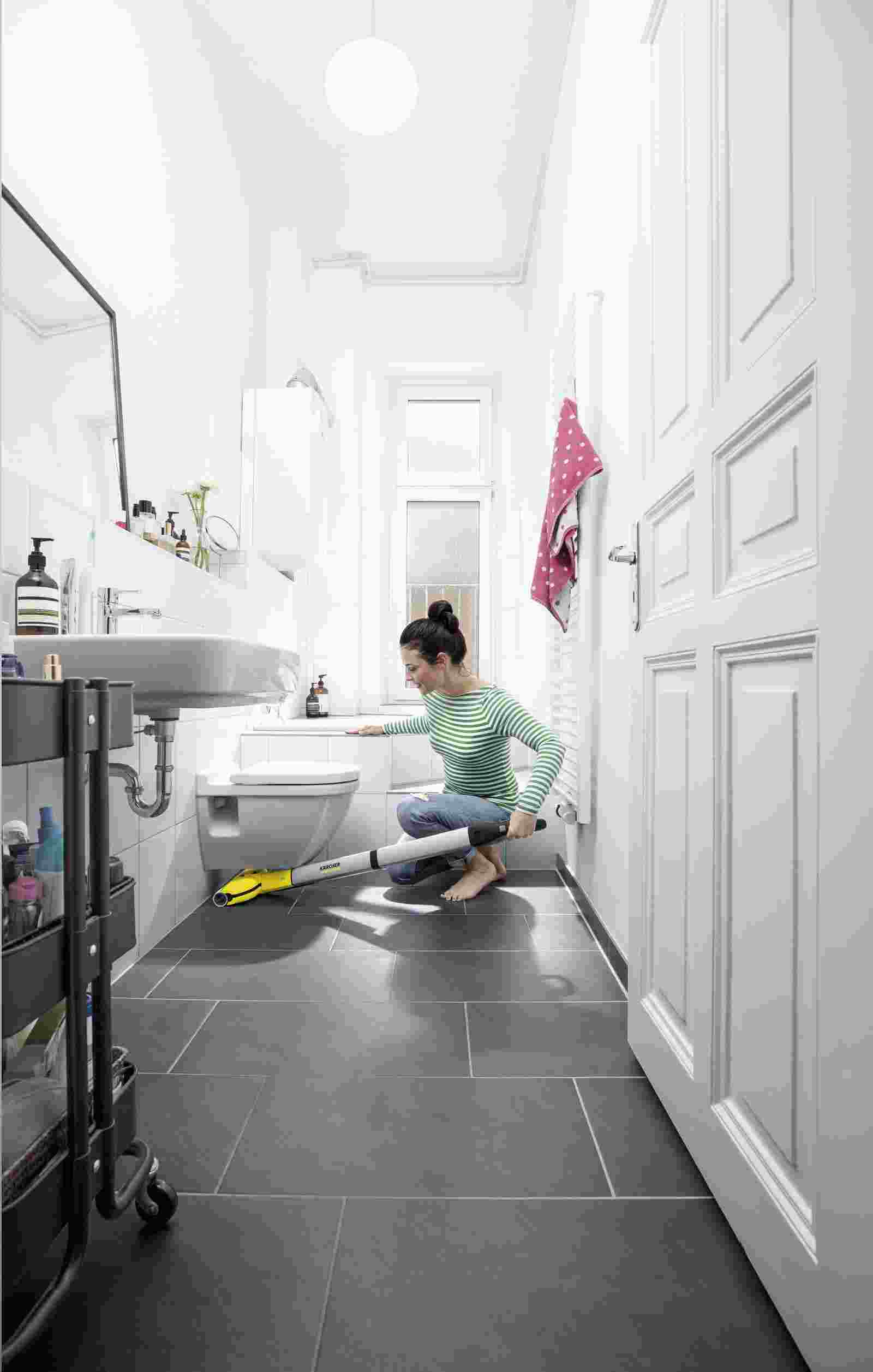 Vytierať stále čistou vodou? Bateriová podlahová myčka FC 3 Cordless sa o to postará. Nečistoty sú zhromažďované v nádobkách umiestnených za valcami. Rotujúce valce neustále zvlhčuje čistá voda, zatiaľ čo vytierané nečistoty sa dostanú do nádrže špinavej vody. Podlahy sú tak o 20 percent čistejšie ako pri použití bežného mop. Štíhla konštrukcia myčky FC 3 Cordless zabezpečuje bezproblémovú prácu aj pod nábytkom a jej pohodlné uloženie bez veľkých nárokov na miesto. Otočný kĺb sa postará o bezproblémové čistenie okrajov i rohov. Čas potrebný na uschnutie podlahy je iba približne 2 minúty, čím je možné túto myčku používať úplne bez starostí aj na tvrdé podlahy (napríklad aj na parkety). Výkonná lítiovo-iónová batéria poskytuje maximnú voľnosť pohybu, pretože je možné vytierať úplne nezávisle od zásuviek. A intuitívna LED kontrolka priebežne informuje o stave batérie.