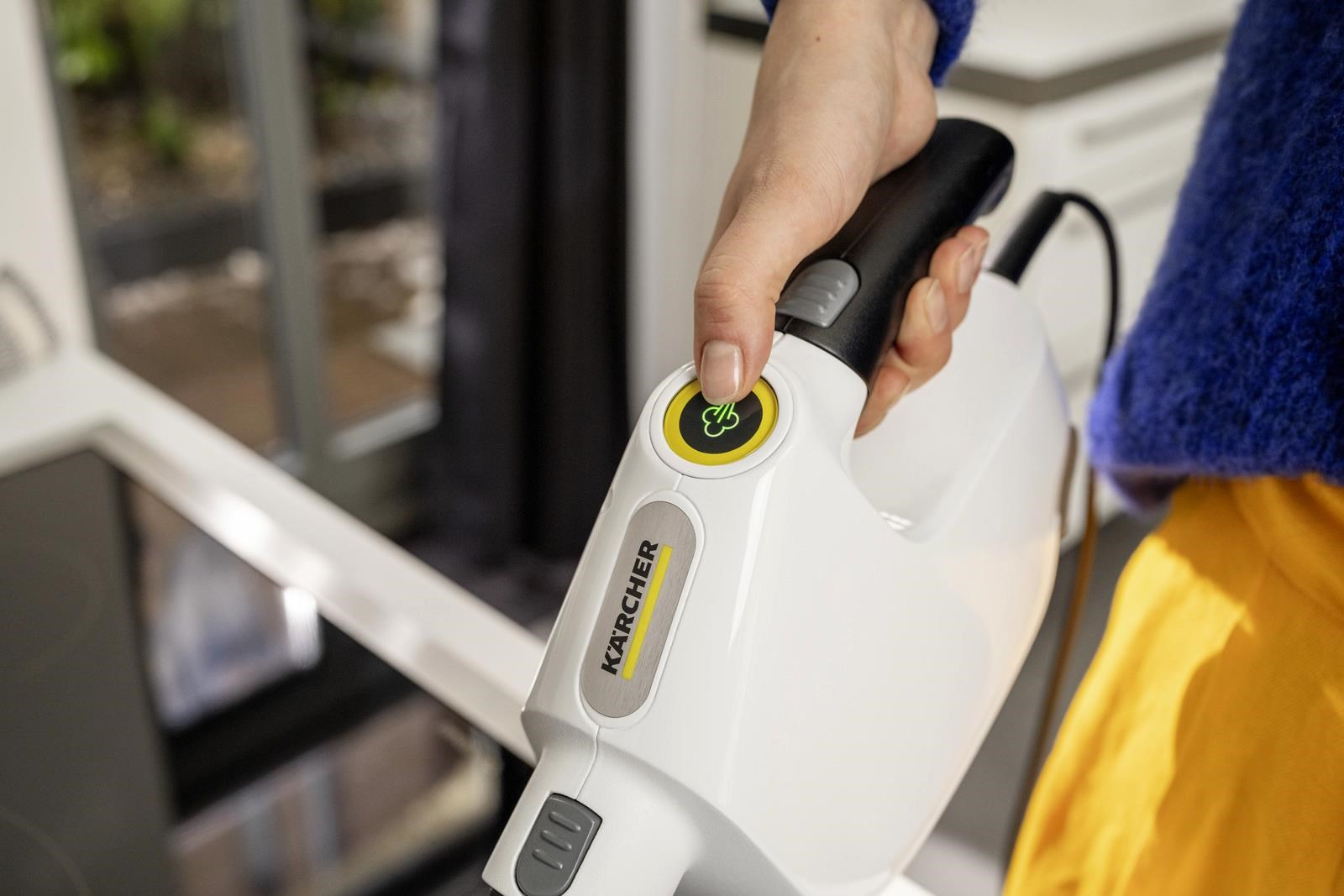 Kompaktný parný mop SC 1 Multi & Up čistí bez použitia chemikálií a dá sa rýchlo použiť na hlboký upratovaní celého domu, a to buď ako multifunkčný ručný parný čistič, alebo ako všestranný parný mop 3 v 1 vďaka sade veľkých podlahových hubíc EasyFix, ktorá je súčasťou balenia. Pracuje vo troch rôznych polohách zariadenia - horná, stredná a dolná - a dokonale sa prispôsobí individuálnym požiadavkám. Dôkladné čistenie parným čističom Kärcher odstráni z tvrdých povrchov až 99,999 % vírusov* a 99,99 % všetkých bežných domácich baktérií**. Vďaka kompaktnému a praktickému designu sa prístroj pohodlne používa a ľahko skladá aj v tých najmenších priestoroch. SC 1 Multi & Up je pripravený na použitie do 30 sekúnd a vďaka odnímateľnej nádržke na vodu sa ľahko dopĺňa - to znamená, že nemusíte dlho čakať alebo prerušovať prácu. Vymeniteľná odvápňovacia kazeta zabezpečuje automatické odstraňovanie vodného kameňa, čím je životnosť výrobku päťkrát dlhšia. Svetelný LED displej s ovládacím panelom umožňuje jednoduché a bezproblémové ovládanie. Na displeji sú vždy zobrazené rôzne režimy, ako je ohrev, pripravenosť na použitie, parný režim a termín výmeny patrony.