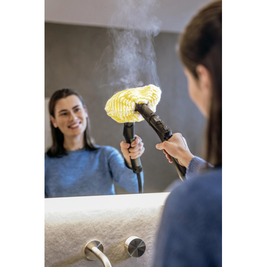 Žehlička SC 5 EasyFix nielenže skvele padne do oka, ale takisto sľubuje plný čistiaci výkon: Vynikajúci tlak pár 4,2 baru z nej robí najlepší parný čistič vo svojej triede. Štyrstupňová regulácia pár umožňuje podľa potreby nastaviť prietok pár. Dôkladné čistenie parným čističom Kärcher odstráni 99,999 % vírusov* a 99,99 % všetkých bežných baktérií v domácnosti** z typických tvrdých povrchov v domácnosti. A vďaka širokej škále dostupného príslušenstva dokáže dokonale vyčistiť hladké povrchy, digestory, rohy a medzery. Obzvlášť praktická naparovacia žehlička, ktorá je súčasťou dodávky, urýchľuje žehlenie o 50 %. Funkcia VapoHydro navyše umožňuje pridanie horúcej vody a jednoduchšie odstránenie a spláchnutie odolných nečistôt. Flexibilná podlahová hubica EasyFix sa vyznačuje pôsobivou a účinnou lamelovou technológiou. Pomocou suchého zipsu možno podlahovú handričku pohodlne upevniť k podlahovej hubici, bez toho, aby prišla do kontaktu s nečistotami. Nádobu na vodu možno vybrať a trvalo dopĺňať. Dodáva sa tiež s integrovaným úložným priestorom pre kábel, úložným priestorom pre príslušenstvo a parkovacou polohou pre podlahovú hubicu.