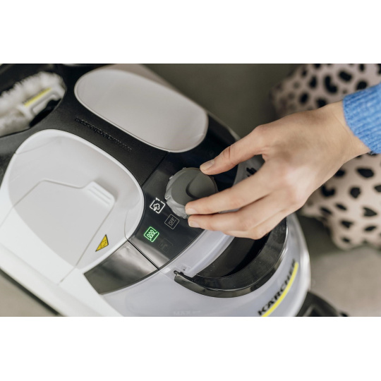 Pridáva horúcu vodu do pár. Nečistoty sa ľahšie odstraňujú a jednoduchšie spláchnuť. Pre ešte lepšie výsledky čistenia. Parný čistič SC 5 EasyFix Iron: