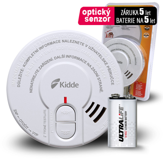 Hlásič požiaru je vybavený testovacím tlačidlom TEST na kontrolu správneho fungovania zariadenia a HUSH na dočasné umlčanie požiarneho hlásiča v prípade planého poplachu. Stlačenie tlačidla spôsobí okamžitú deaktiváciu alarmu, na približne 10 minút, zníženie citlivosti obvodov a vypnutie akustickej signalizácie hlásiča. Tlačidlo HUSH používajte iba v prípade, že poznáte príčinu aktivácie hlásiča (napríklad pri varení alebo smažení). Po cca 10 minútach od deaktivácie hlásiča sa tento úplne automaticky resetuje do pôvodného nastavenia pre monitorovanie nebezpečenstva požiaru. Ak zostane v miestnosti vysoká koncentrácia dymu, môžete stlačiť tlačidlo HUSH opakovane až do okamihu, keď je miestnosť riadne odvetraná. Tento model je vybavený najmodernejším fotoelektrickým sensorom Kidde.