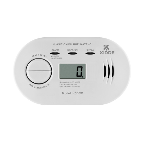 Ekonomické riešenie a nízka obstarávacia cena s elektrochemickým senzorom a 7-ročnou zárukou to je detektor oxidu uhoľnatého (CO) Kidde K5DCO, ktorý priebežne monitoruje prítomnosť jedovatého oxidu uhoľnatého v domácnostiach alebo prevádzkach, a tak poskytuje ochranu pred jeho smrteľnými účinkami. Okrem trojice kontrolných LED indikátorov disponuje tiež LCD displejom, na ktorom priebežne zobrazuje namerané hodnoty CO a ďalšie stavové informácie. Hlásič možno pevne nainštalovať na stenu alebo pre lepší komfort jednoducho položiť na stôl, poličku alebo iný vodorovný povrch. Je ideálnym bezpečnostným prvkom a spoľahlivou ochranou pred týmto tichým zabijakom nielen pre domácnosti, ale aj v prenajatých ubytovacích priestoroch či počas dovolenky.