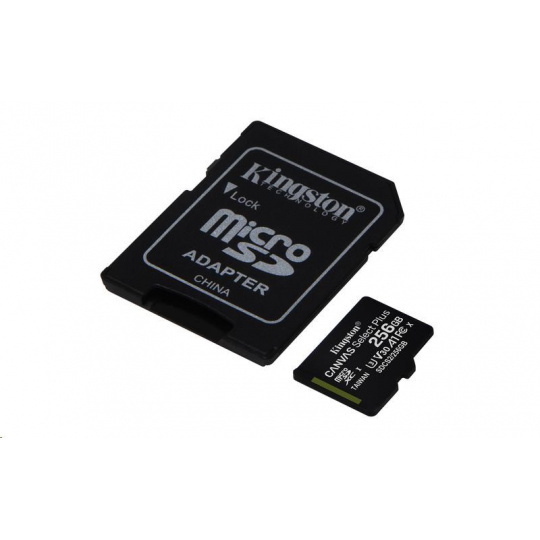 Karta Kingston 256GB micSDXC Canvas Select Plus 100R A1 C10 + adaptér SD