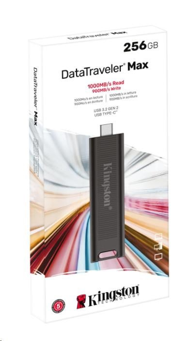 Kingston DataTraveler® Max je vysoko výkonný flash disk USB typu C®1ktorý využíva najnovší štandard USB 3.2 2. generácia pre rýchlosť čítania/zápisu záznamov do 1000/900 MB/s2. Jedinečné tvarované puzdro, navrhnuté s ohľadom na prenosnosť a pohodlie, chráni konektor, keď sa nepoužíva, a možno ho ľahko premiestniť jediným pohybom. DT Max ponúka vynikajúci výkon a rozšírenú kapacitu až do 1 TB3, čo z neho robí ideálne riešenie na prenos a ukladanie veľkých digitálnych súborov, ako sú fotografie v rozlíšení HD, videá v rozlíšení 4K/8K, hudba a ďalšie.