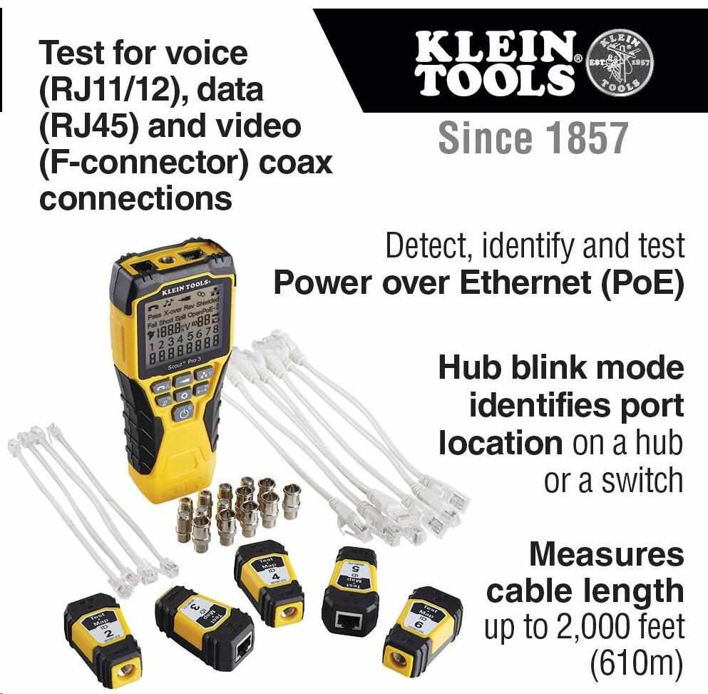 KLEIN TOOLS - VDV Scout® Pro 3 Tester Kit Locator Map™ (PoE)