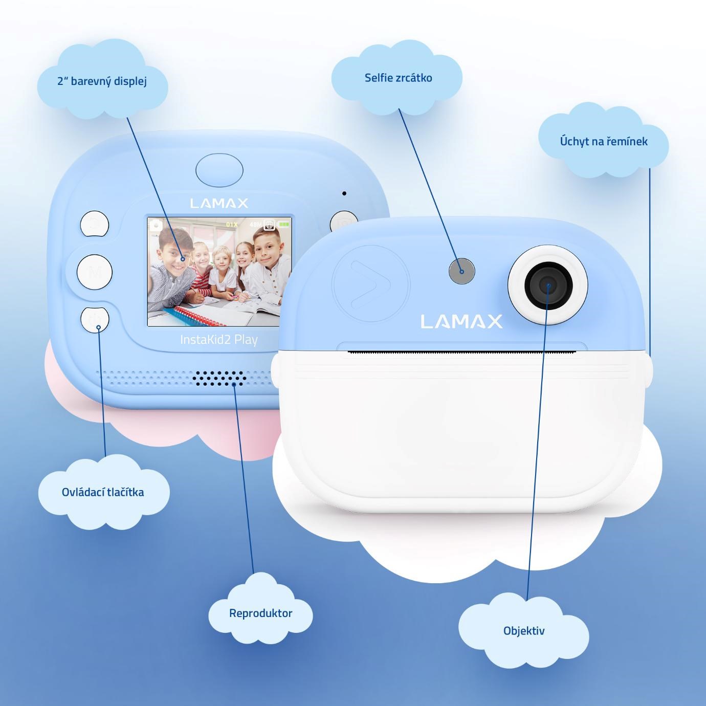 LAMAX InstaKid2 Play je foťák, ktorý nestráca čas. Deti si s ním jednoducho zaznamenajú každý dôležitý moment a počas sekundy ho majú v ruke. Čiernobiele snímky sa môžu premeniť na farebné spomienky pomocou fixiek, ktoré sú súčasťou balenia – stačí ich len vyfarbiť, pridať do vlastného albumu alebo nimi potešiť napríklad babičku. Vďaka jednoduchému ovládaniu, dvom ruličkám v balení (vrátane samolepiacej), originálnemu dizajnu a výkonnej kamere so 48 Mpx a FullHD videom, sa foťák stane nepostrádateľným spoločníkom na výlety, oslavy aj tvorivá popoludní s kamarátmi. Obľúbia si ho aj staršie deti, ktoré si môžu svoje snímky aj videá ukladať na microSD kartu a uchovať si tak svoje prvé filmárske pokusy. Na výber je ružová alebo modrá varianta a nechýba ani praktická šnúrka na krk, aby mali deti foťák stále po ruke. A keď práve nefotí? Zábavu zaistí päť hier priamo vo fotoaparáte. Tento foťáčik totiž nie je len o spomienkach, je tiež o radosti, sebavyjadrení a fantázii.
