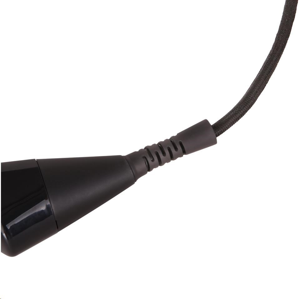 Matný čierny povrch v kombinácii s keramickou žehliacou plochou do špičky vyzerajú štýlovo, ale sú predovšetkým funkčné. Vďaka špičatému tvaru sa pohodlne dostanete napríklad ku golierom či medzi gombíky.