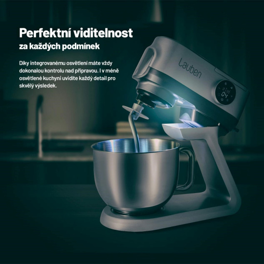 Či už pripravujete ľahké cesto na koláč alebo hutné na domáci chlieb, kuchynský robot Lauben Kitchen Machine 1300SG si s ním vďaka svojmu vysokému výkonu 1 300 W hravo poradí. Misa z prémiovej nerezovej ocele s kapacitou 5,5 l pojme dostatok ingrediencií aj pre väčšie stretnutie a nemusíte špiniť ďalší riad, pretože integrovaná váha rovno naváži všetko, čo pridáte. Misa disponuje osvetlením, takže prípravu je možné ľahšie sledovať. Zároveň je vybavená vekom pre väčšiu bezpečnosť, v ktorom sa nachádza plniaci otvor, cez ktorý ľahko pridáte ďalšie ingrediencie aj za chodu.