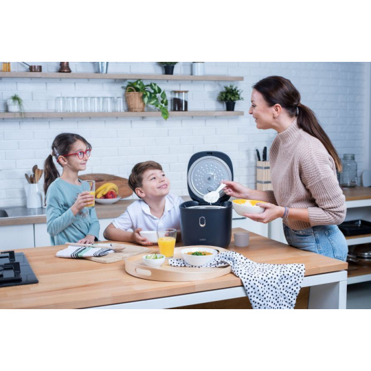 Zbaví vás až 40 % sacharidov v ryžiAk chcete jesť zdravšie, multiúčelový ryžovar Lauben Low Sugar Rice Cooker 3000AT by vám nemal chýbať. Jeho funkcia low sugar odstráni až 40 % sacharidov z ryže. Prístroj si poradí so všetkými druhmi ryže, ale aj s ďalšími ingredienciami, napríklad strukovinami. Môžete si vybrať zo 6 režimov, ktoré je však možné ručne upraviť. Prémiový neprilnavý keramický povrch jeho 3l nádoby pripraví jedlo pre celú rodinu bez potreby používania tuku a obáv z pripálenia. Teší sa z funkcie Keep Warm, ktorá udrží pokrmy teplé bez rizika rozvarenia, odloženého štartu alebo ochrany proti pretečeniu a technológie Cool Touch, vďaka ktorej sa nepopálite o ryžovar. Dotykové tlačidlá uľahčujú nastavenie ryžovaru. Jednoduchá údržba je samozrejmosťou, stačí vložiť vnútornú časť do umývačky. Ako inšpiráciu sme pridali aj kuchárku.