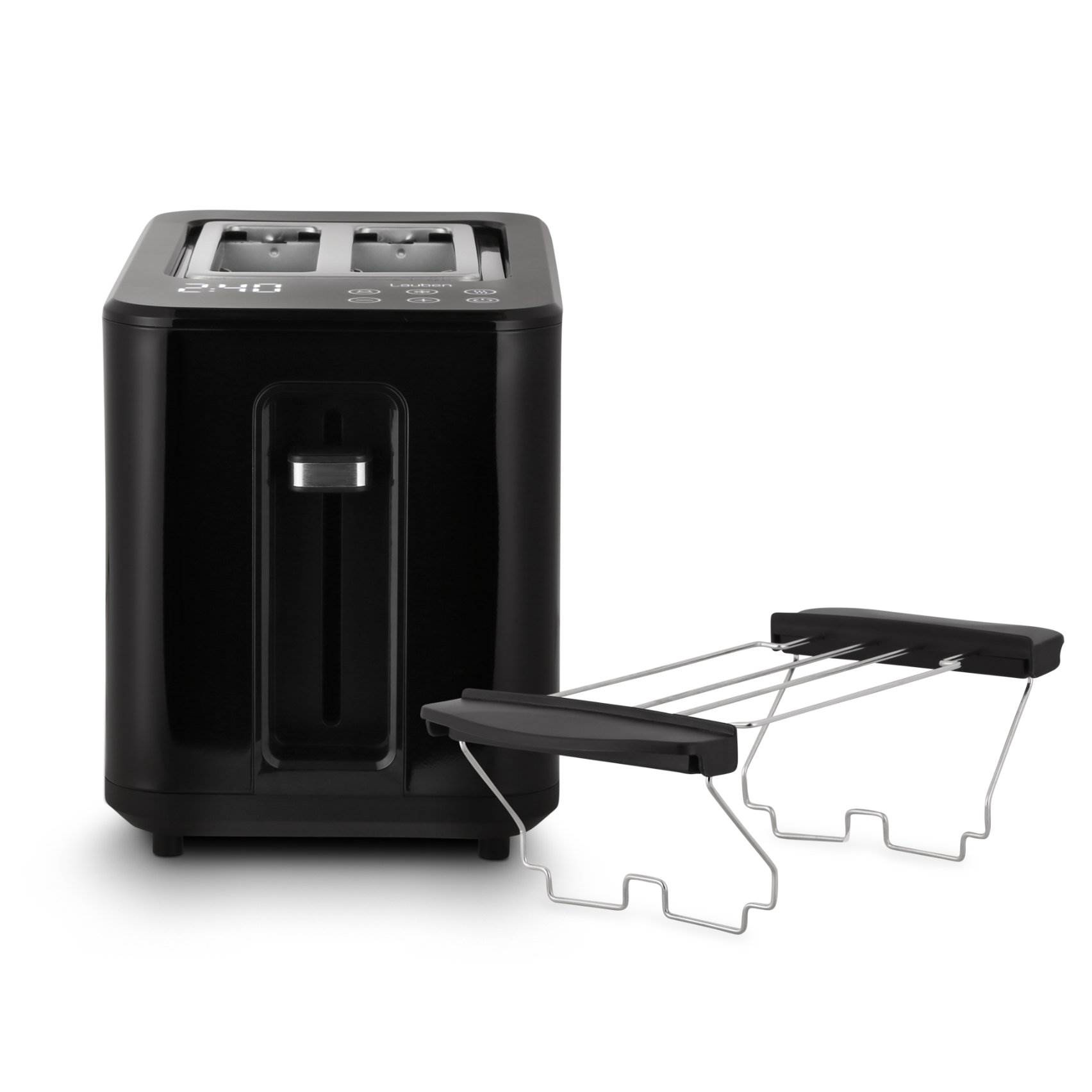 Chrumkavý toast na raňajky natretý maslom predstavuje pre mnohých dokonalý začiatok dňa. S Lauben Toaster 900BC získajú vaše raňajky či desiaty úplne nový rozmer, vďaka digitálnemu nastaveniu na dotykovom displeji máte na výber zo 7 stupňov intenzity opečenia. Dokonca si môžete uložiť svoj obľúbený stupeň opečenia. Ak si nie ste istí, ako moc opekať, proces môžete kedykoľvek manuálne ukončiť. A ak sa stane, že toast trochu vychladne, môžete si ho prehriať funkciou Reheat. Rýchle je aj rozpiekanie pečiva, keď stačí dať obľúbený croissant na ohrevnú mriežku, zapnúť a je ako z pekárne. Pomocou funkcie Defrost môžete všetko ľahko rozmraziť. Údržba topinkovača nie je zložitá, stačí vybrať táck na drobky a vysypať. Vylepšenú kuchynskú linku získate s varnou konvicou v rovnakom dizajne.