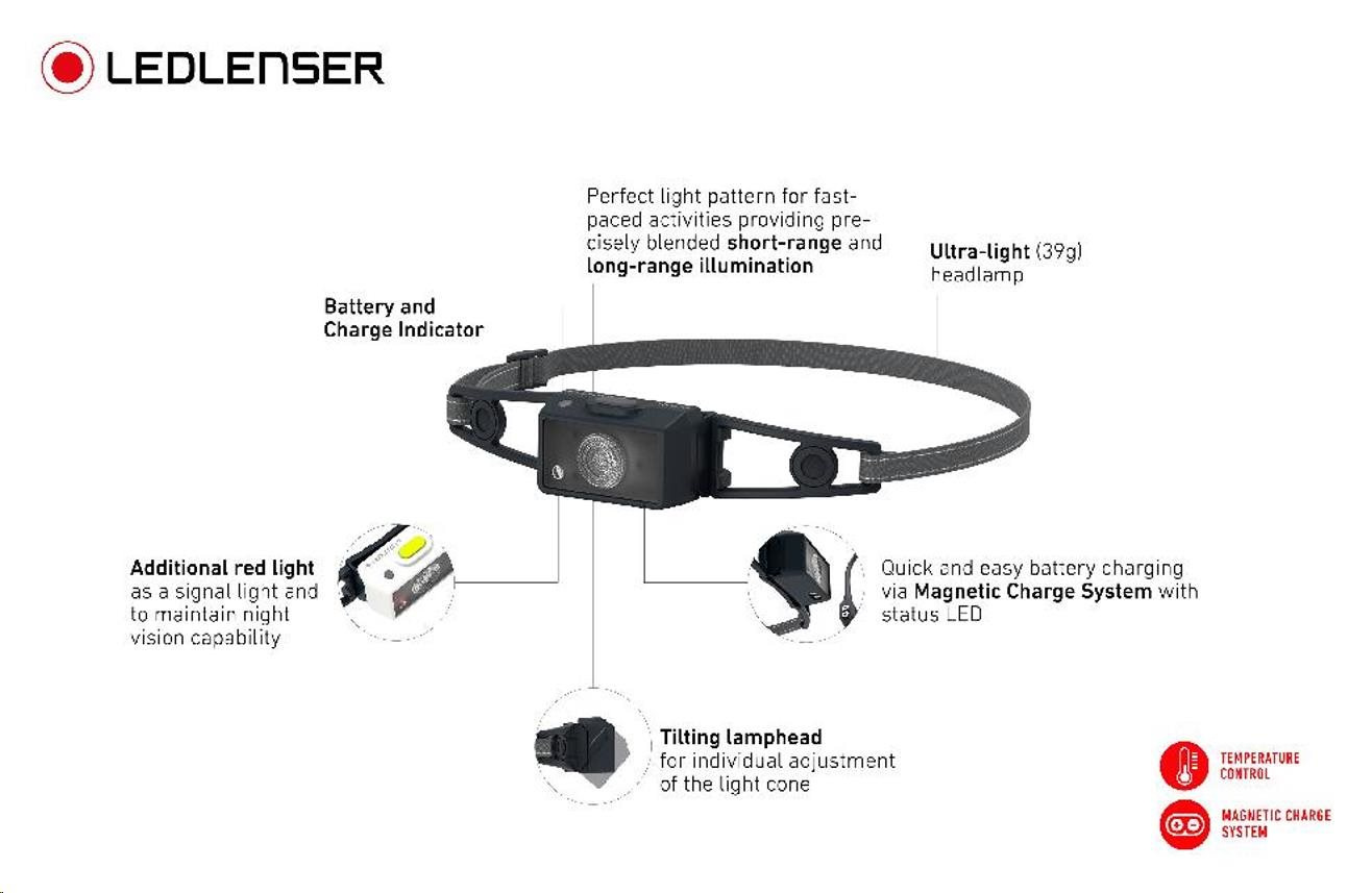 Moderný vzhľad, naklápacia hlava, dodatočné červené svetlo a praktický magnetický systém nabíjania – to všetko ponúka moderná bežecká čelovka LEDLENSER NEO1R.