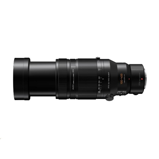- LEICA DG VARIO-ELMAR 100-400mm / F4.0-6.3 II ASPH. / POWER O.I.S. - 9 diaphragm blades aperture F4.0 – F22 - Closest Focusing Distance 130cm (Full) / 500cm (Limit) - Maximum Magnification 0.25x / 0.5x (35mm equivalent) - Teleconvertor lens DMW-TC14 (1,4x magnification), DMW-TC20 (2.0x magnification) compatible - Fully optimized for video, dynamic aperture, quiet operation, smooth focus tracking - Focus Breathing Suppression, Linear/Non-linear focus ring control - Resistance to weather conditions, rain, dust, frost -10°C, Nano Surface Coating - 20 elements in 13 groups (1x Aspherical ED, 1x UED, 2x ED lens) - Dimensions – max. diameter 83mm, length 171.5mm, weight 985g - Filter Size 72mm.