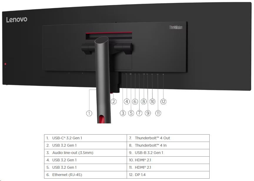 LENOVO LCD P49w-30 - 49”,IPS,matný,16:9,5120x1440,60Hz,4ms/6ms,350cd/m2,2000:1,HDMI,DP,USB-C,ThB,RJ45,USBHub,Pivot,VESA