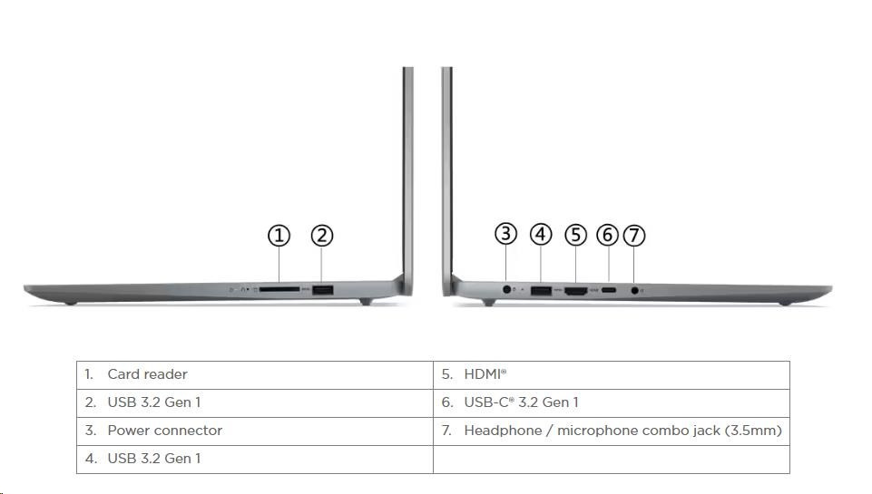 Standartné porty | 2x USB 3.2 Gen 1 1x USB-C® 3.2 Gen 1 (support data transfer, Power Delivery and DisplayPort™ 1.2) 1x HDMI® 1.4 1x Headphone / microphone combo jack (3.5mm) 1x Card reader 1x Power connector |
