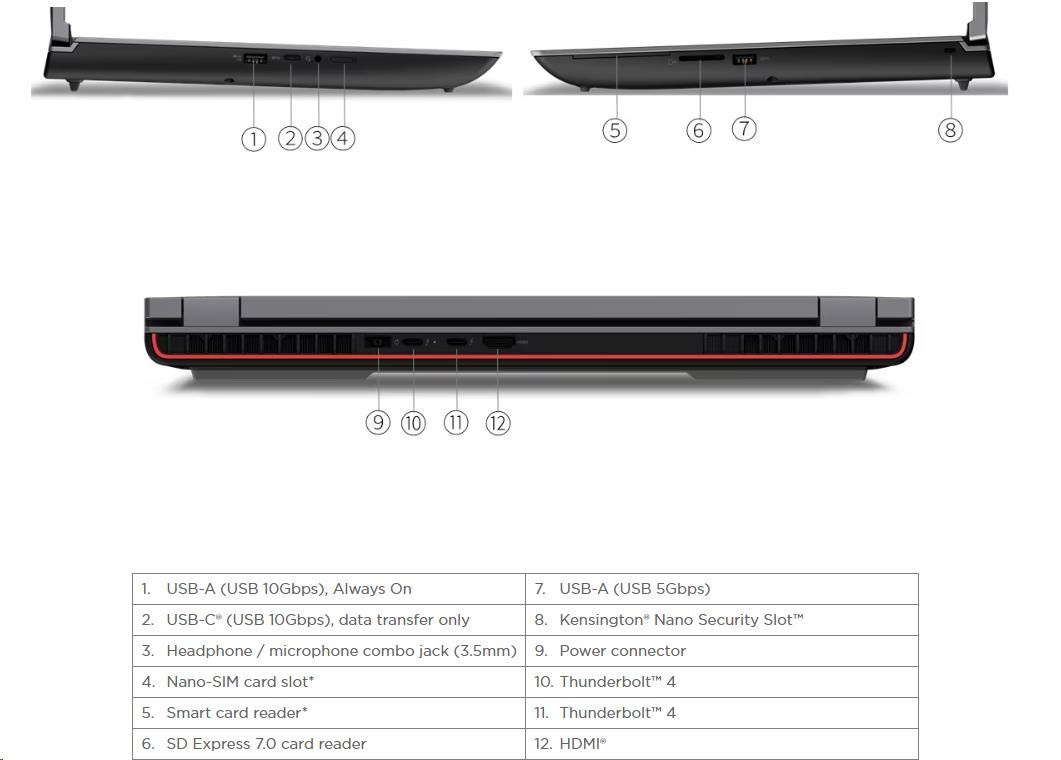 Models with NVIDIA® graphics: 1x HDMI® 2.1, up to 8K/60Hz