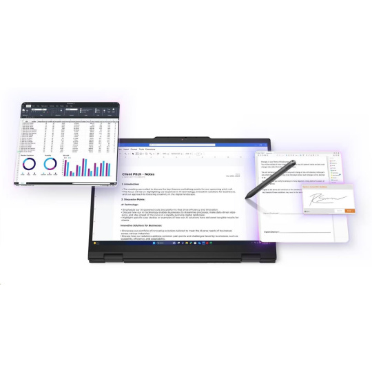 | Standartné porty | 1x USB-A (USB 5Gbps / USB 3.2 Gen 1) 1x USB-A (USB 5Gbps / USB 3.2 Gen 1), Always On 2x USB-C® (Thunderbolt™ 4 / USB4® 40Gbps), with USB PD 3.0 and DisplayPort™ 2.1 1x HDMI® 2.1, up to 4K/60Hz 1x Headphone / microphone combo jack (3.5mm) 1x Smart Card Reader 1x Nano-SIM Card Slot |