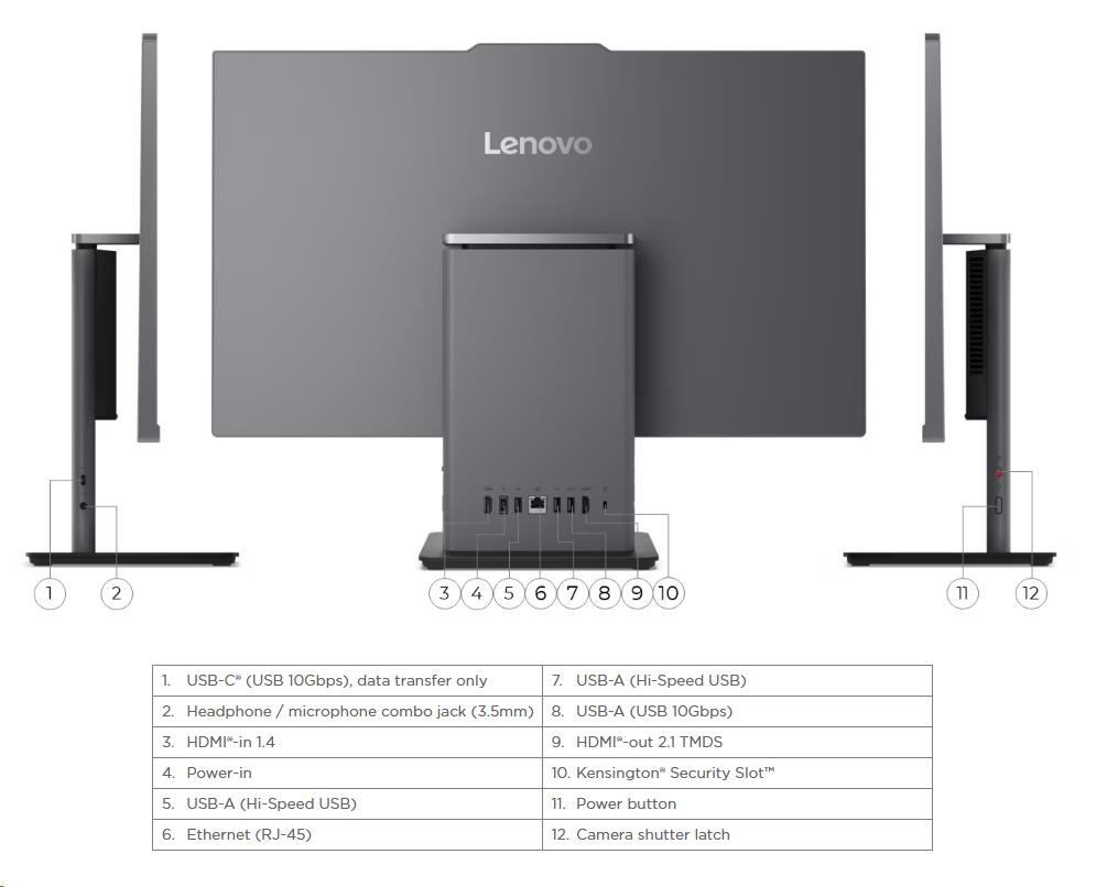 | Zadné porty | 1x USB-A (USB 10Gbps / USB 3.2 Gen 2) 2x USB-A (Hi-Speed USB / USB 2.0) 1x HDMI®-in 1.4 1x HDMI®-out 2.1 TMDS 1x Ethernet (RJ-45) 1x power connector |