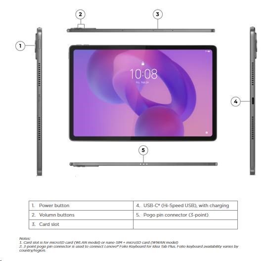 | Standartné porty | 1x USB-C® (Hi-Speed USB / USB 2.0), with charging 1x Card slot 1x Pogo pin connector (3-point) |