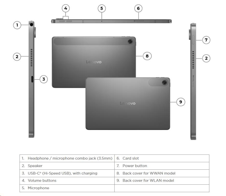 | Standartné porty | Standard Ports 1x USB-C® (Hi-Speed USB / USB 2.0), with charging, digital audio 1x Headphone / microphone combo jack (3.5mm) 1x Card slo |